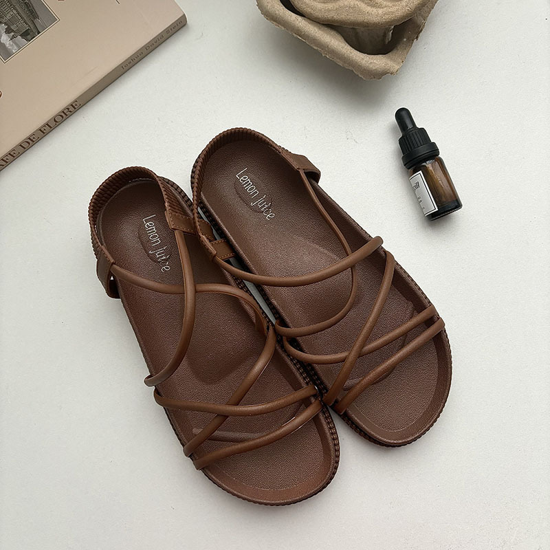 Beautiful thick bottom fairy style beach flat Roman shoes