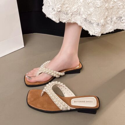 Beautiful thick bottom fairy style beach flat Roman shoes